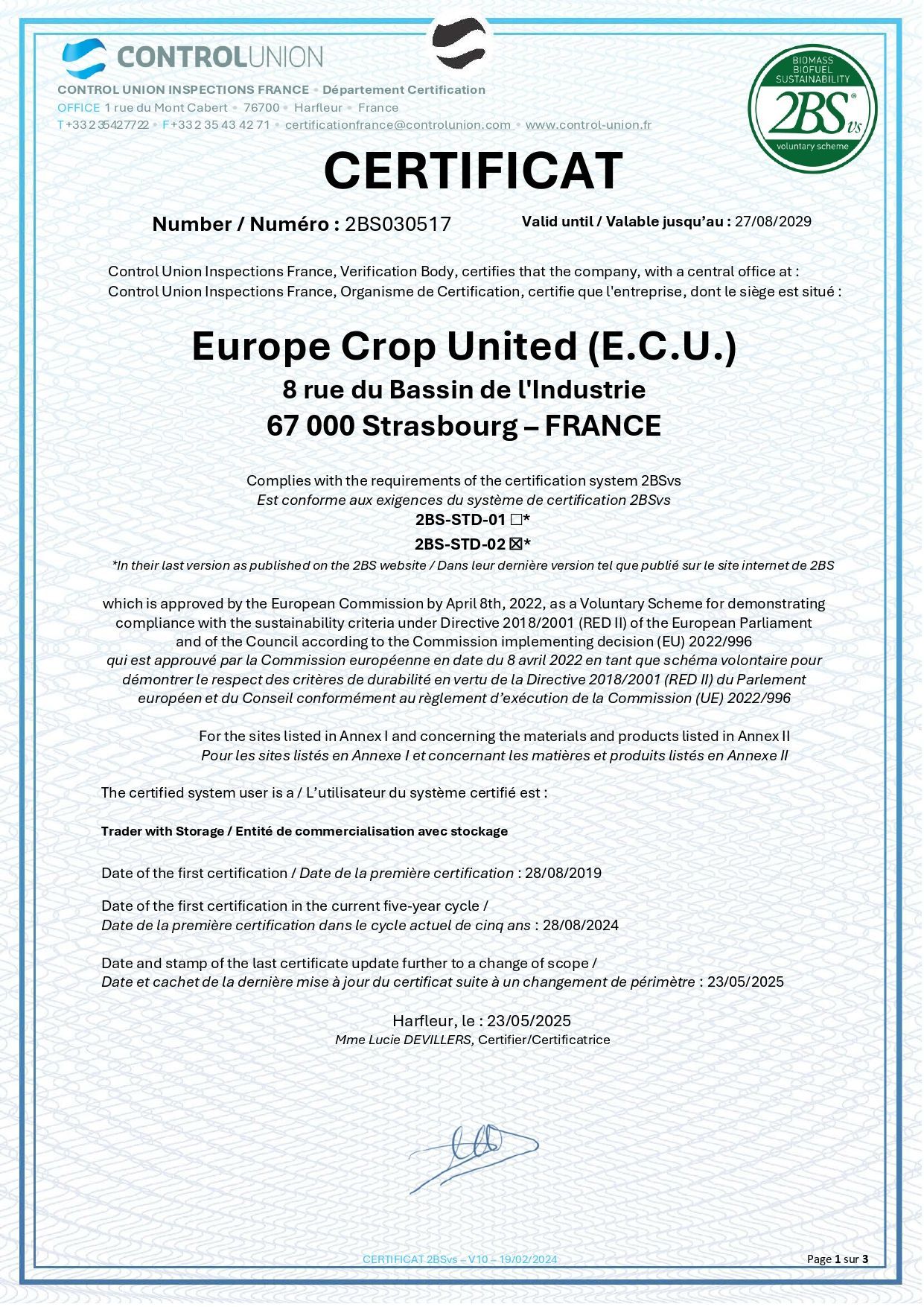 - 1er juillet 2019: Création d’E.C.U. la toute première société en commerce des grains transfrontalière issue de 2 coopératives, la CAC à Colmar et la ZG à Karlsruhe.